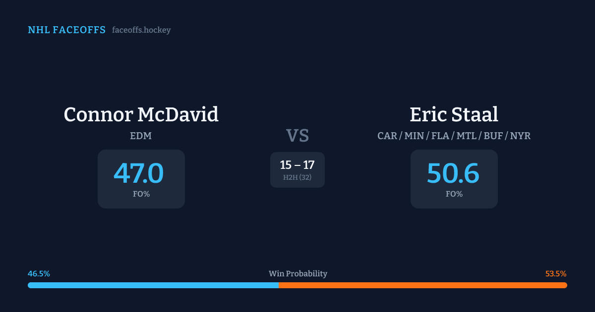 Connor McDavid vs Eric Staal — Faceoff Head-to-Head