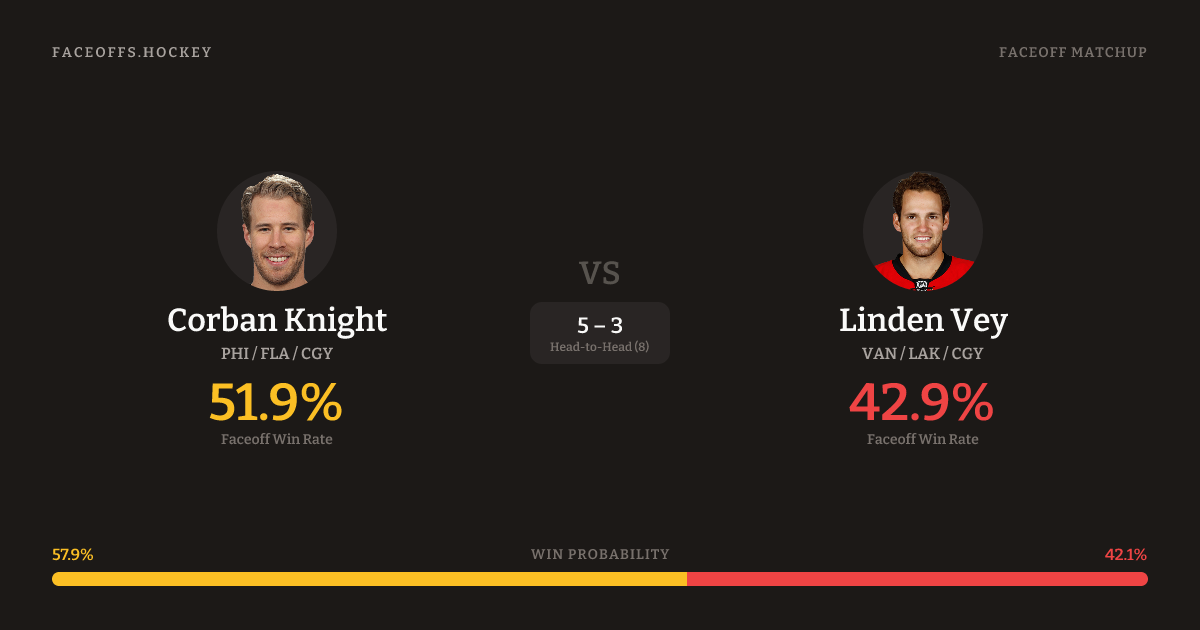 Corban Knight vs Linden Vey — Faceoff Head-to-Head