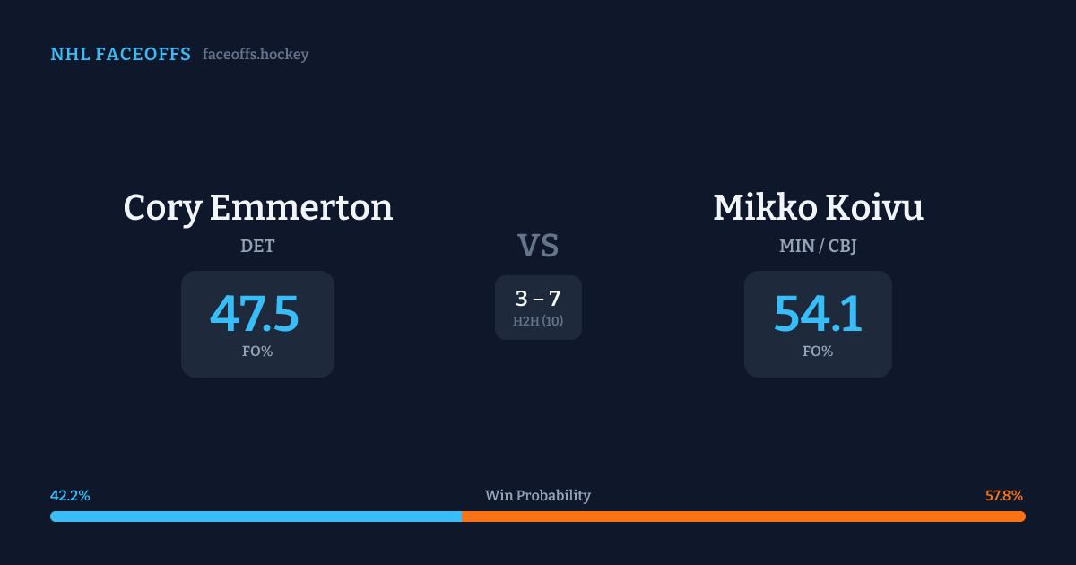 Cory Emmerton vs Mikko Koivu — Faceoff Head-to-Head