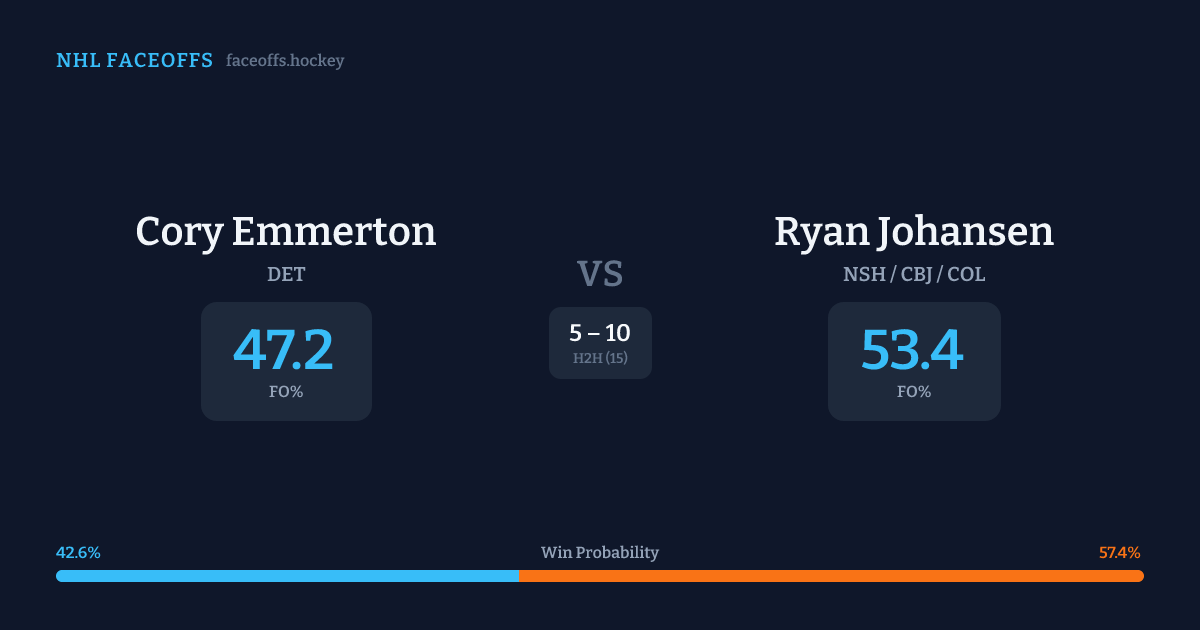 Cory Emmerton vs Ryan Johansen — Faceoff Head-to-Head