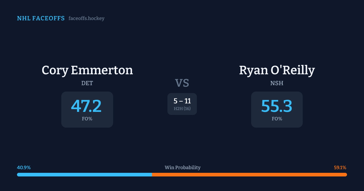 Cory Emmerton vs Ryan O'Reilly — Faceoff Head-to-Head