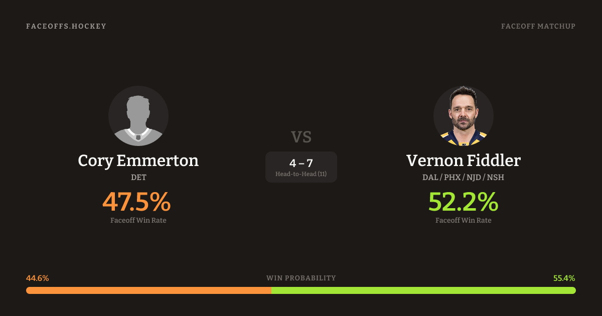 Cory Emmerton vs Vernon Fiddler — Faceoff Head-to-Head