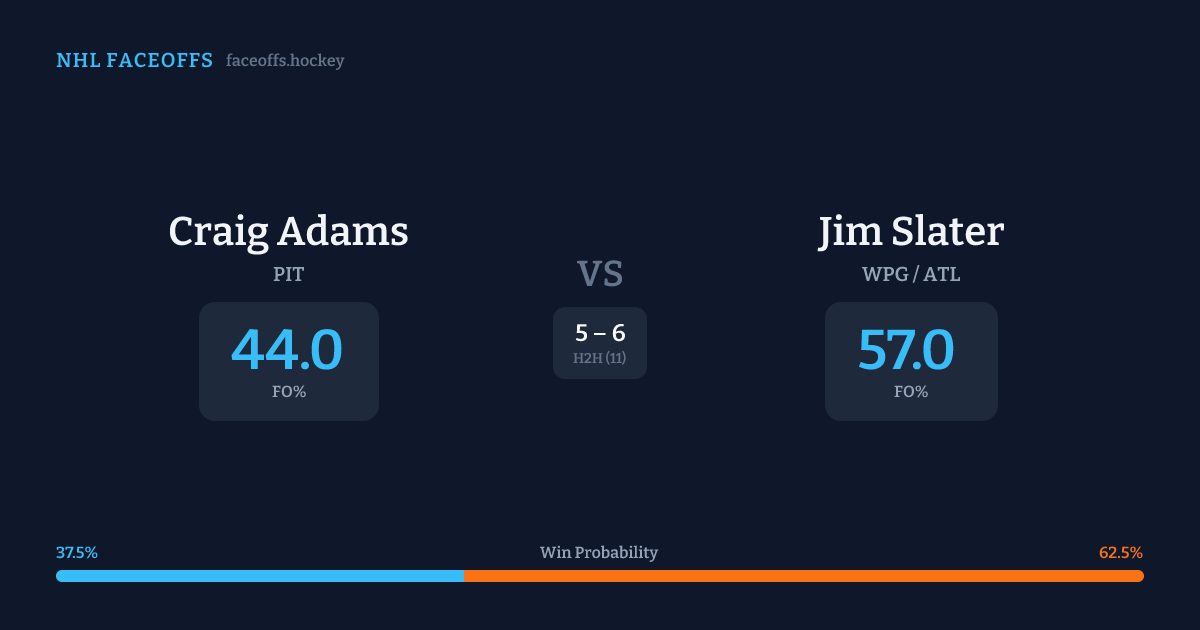 Craig Adams vs Jim Slater — Faceoff Head-to-Head