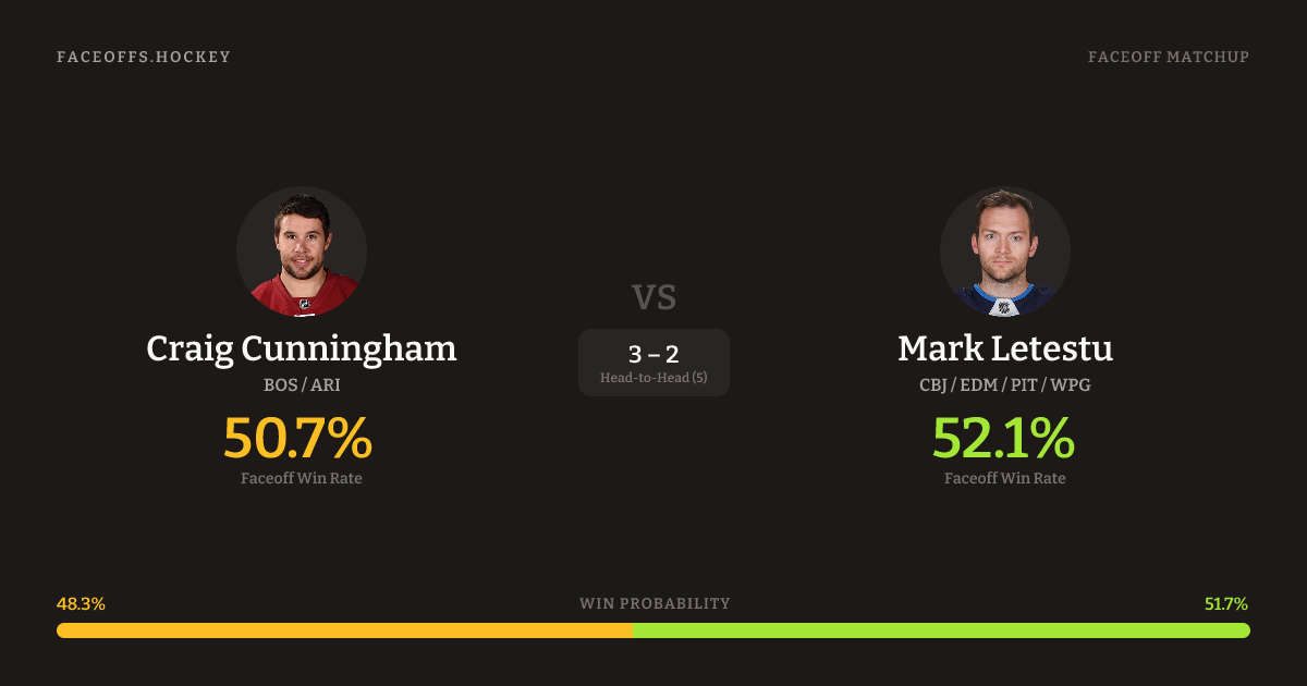 Craig Cunningham vs Mark Letestu — Faceoff Head-to-Head