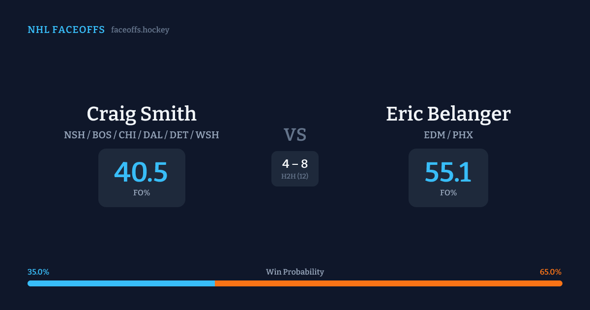 Craig Smith vs Eric Belanger — Faceoff Head-to-Head