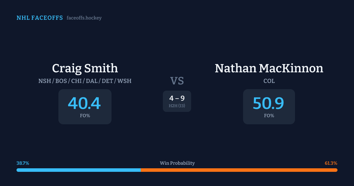 Craig Smith vs Nathan MacKinnon — Faceoff Head-to-Head