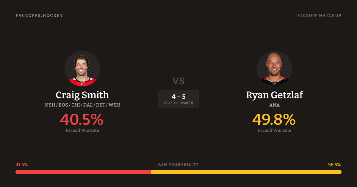 Craig Smith vs Ryan Getzlaf — Faceoff Head-to-Head