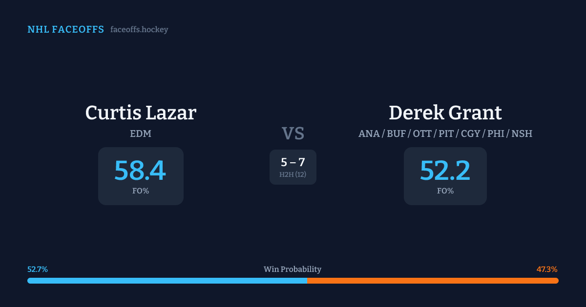 Curtis Lazar vs Derek Grant — Faceoff Head-to-Head