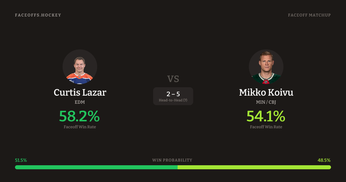 Curtis Lazar vs Mikko Koivu — Faceoff Head-to-Head