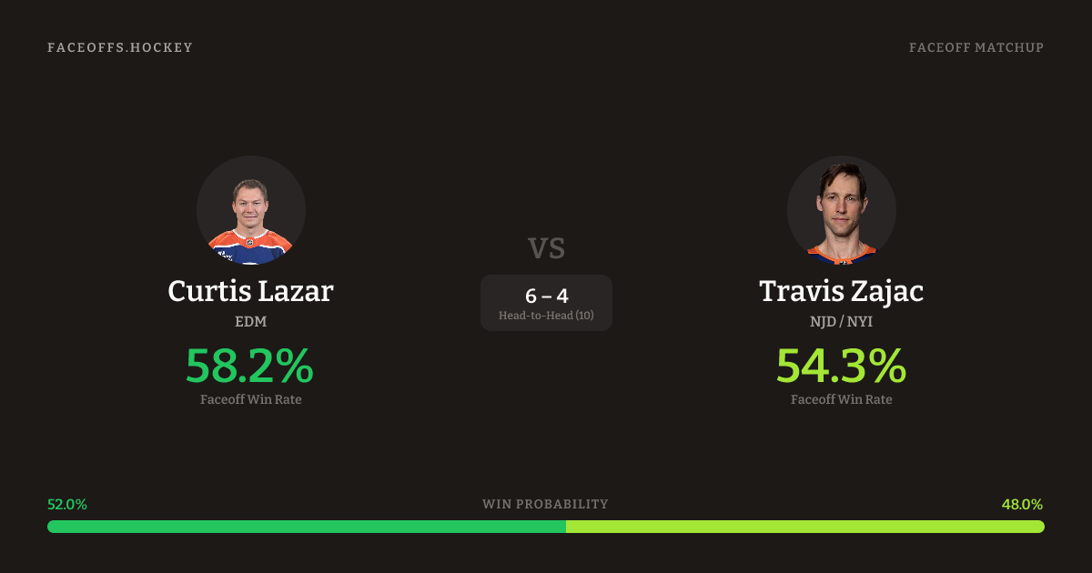 Curtis Lazar vs Travis Zajac — Faceoff Head-to-Head