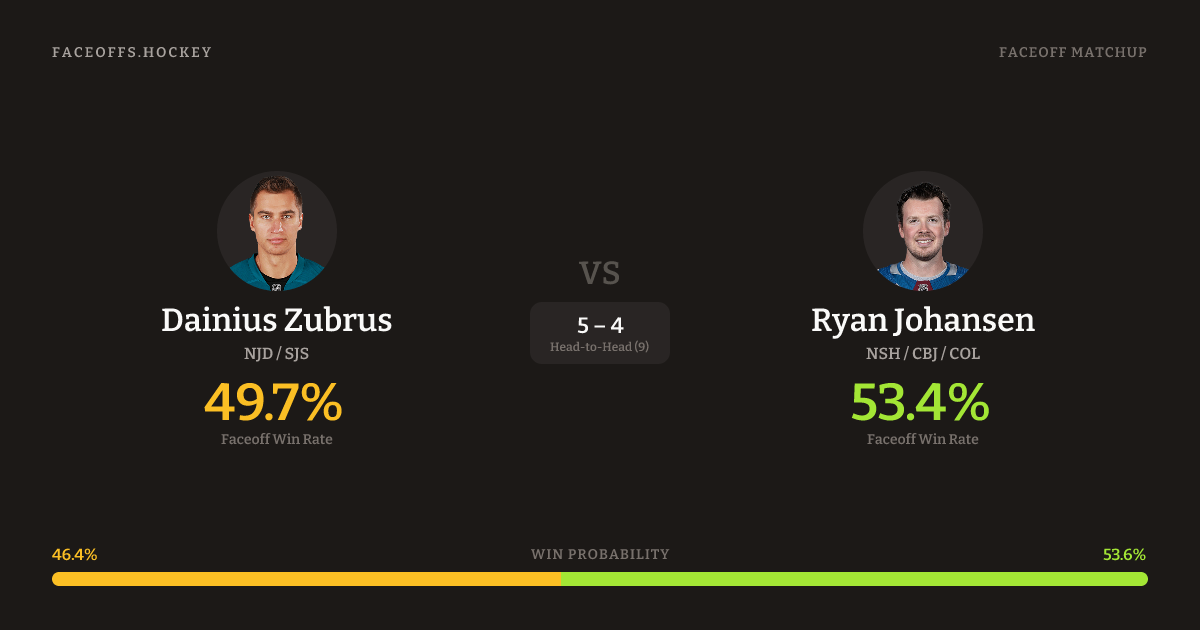 Dainius Zubrus vs Ryan Johansen — Faceoff Head-to-Head