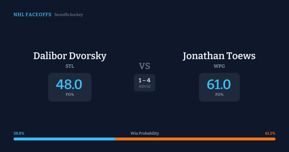 Dalibor Dvorsky vs Jonathan Toews — Faceoff Head-to-Head