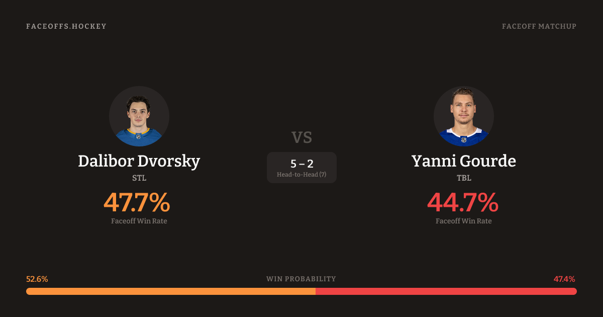 Dalibor Dvorsky vs Yanni Gourde — Faceoff Head-to-Head