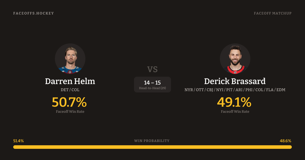 Darren Helm vs Derick Brassard — Faceoff Head-to-Head