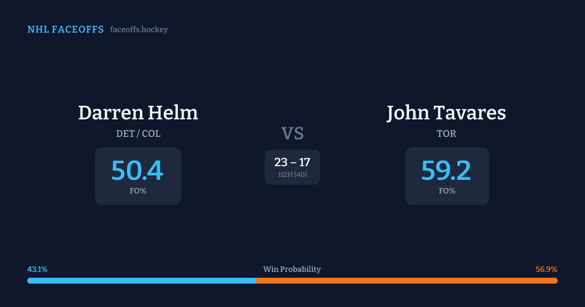 Darren Helm vs John Tavares — Faceoff Head-to-Head
