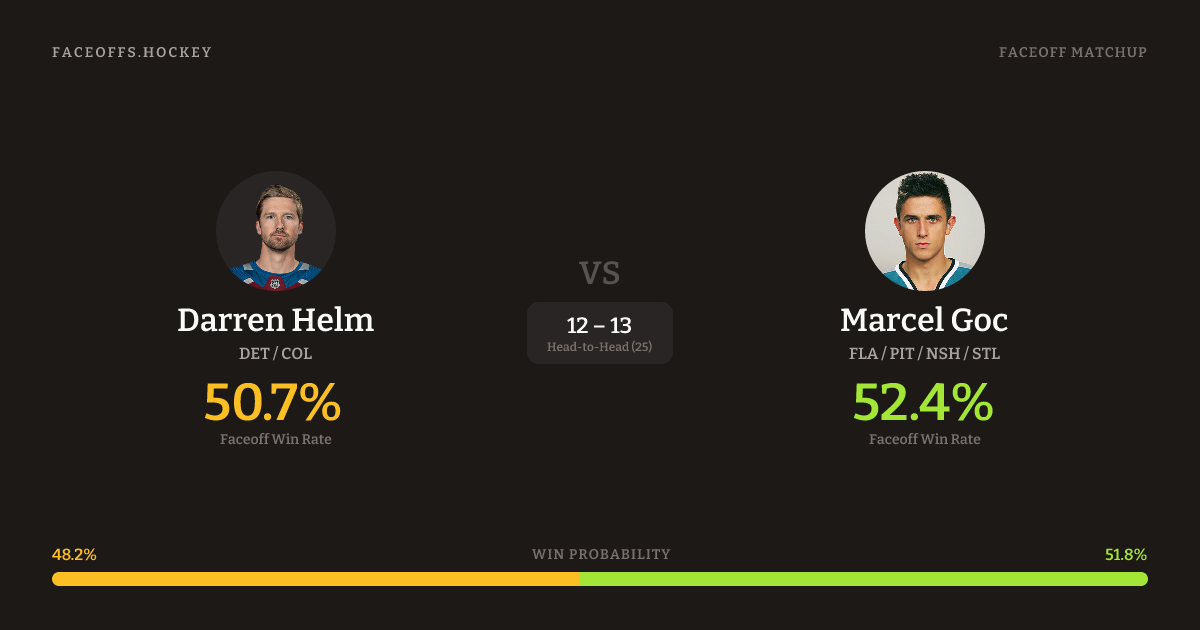 Darren Helm vs Marcel Goc — Faceoff Head-to-Head