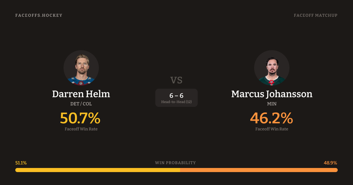 Darren Helm vs Marcus Johansson — Faceoff Head-to-Head