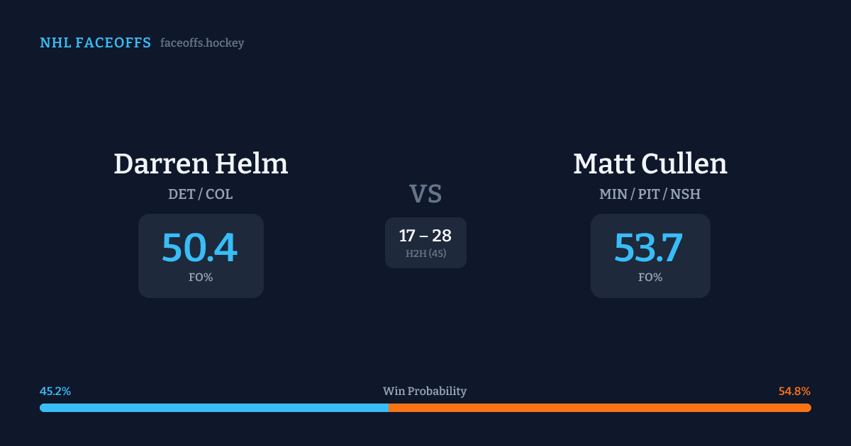 Darren Helm vs Matt Cullen — Faceoff Head-to-Head