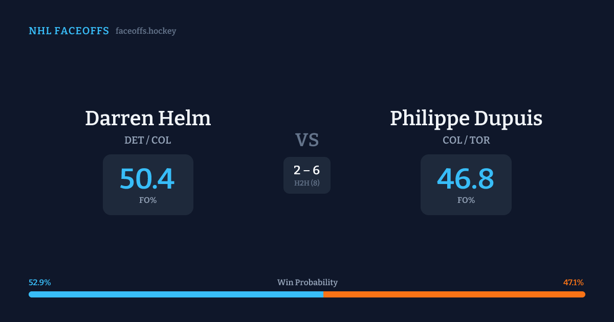 Darren Helm vs Philippe Dupuis — Faceoff Head-to-Head