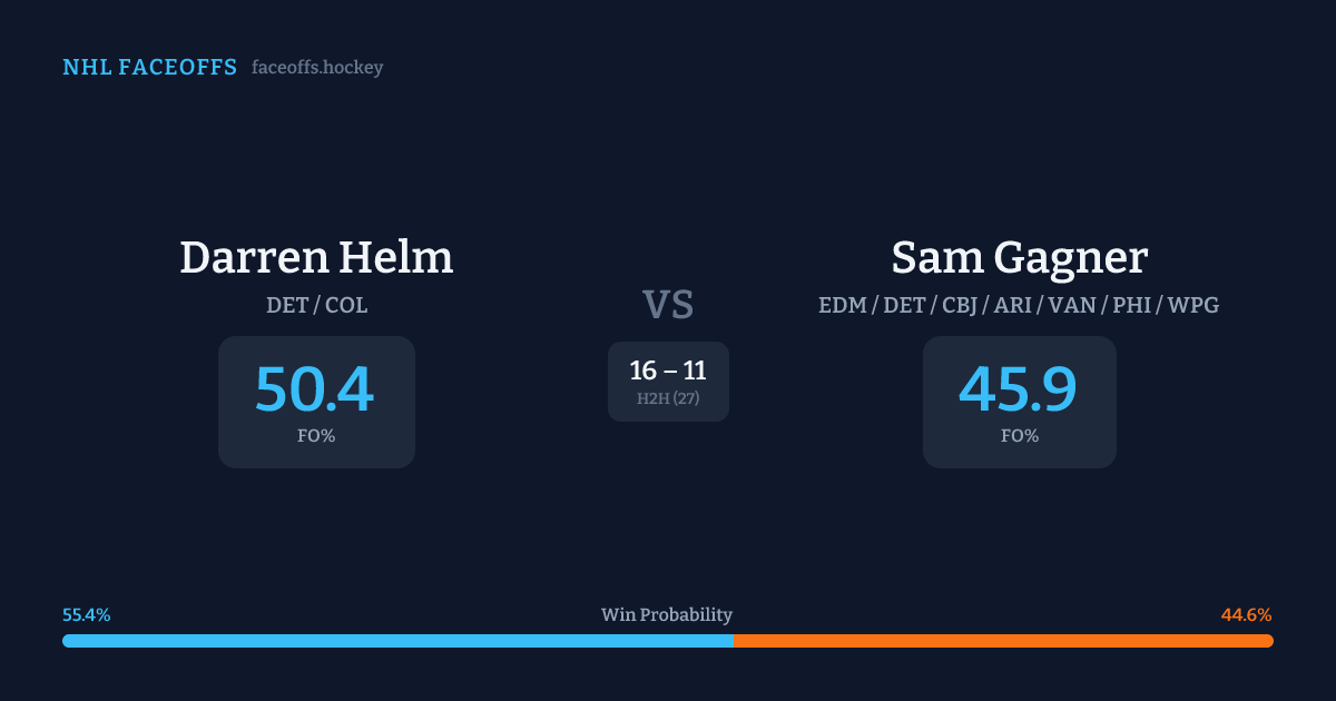 Darren Helm vs Sam Gagner — Faceoff Head-to-Head