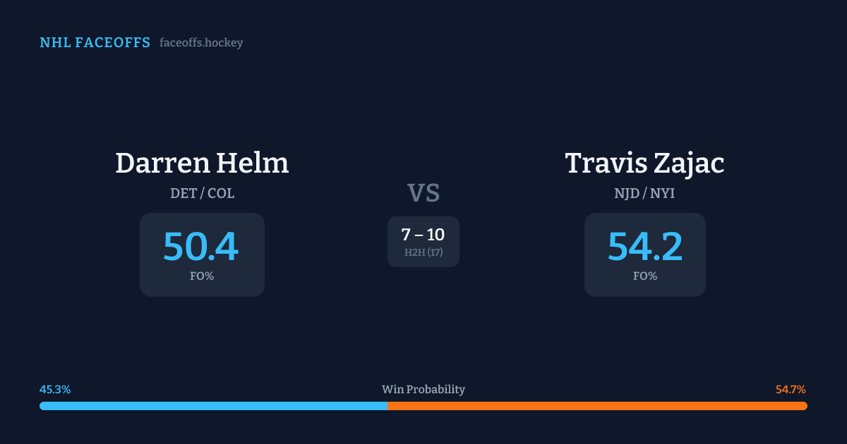 Darren Helm vs Travis Zajac — Faceoff Head-to-Head