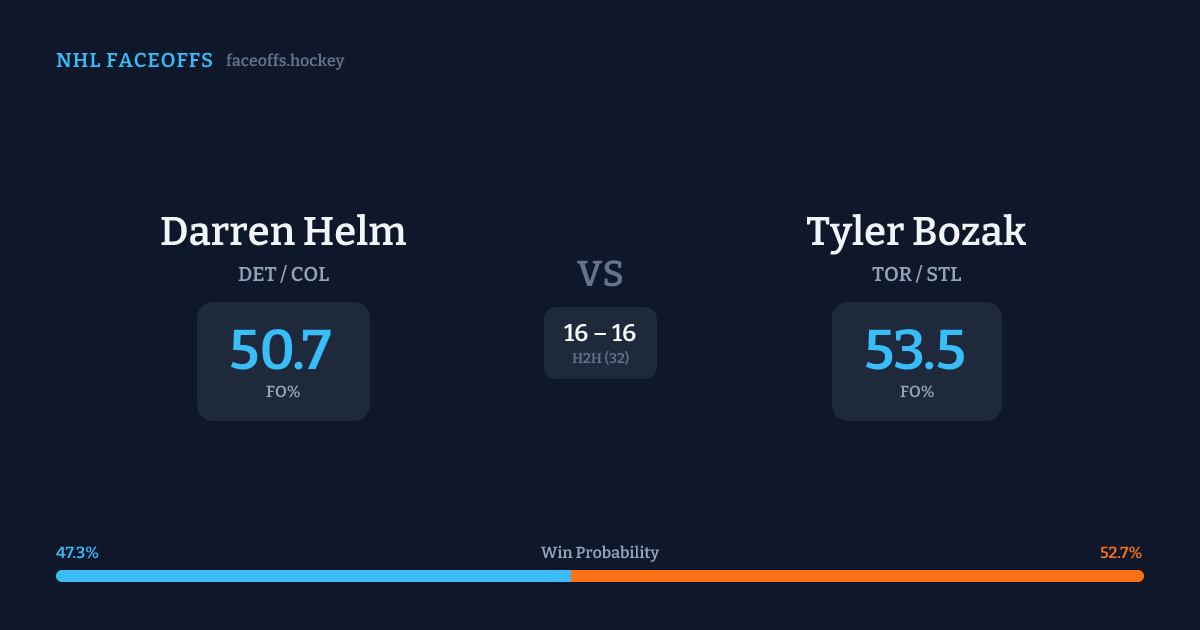 Darren Helm vs Tyler Bozak — Faceoff Head-to-Head