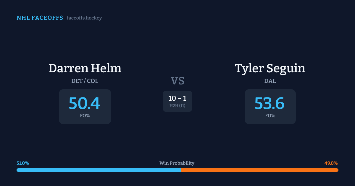 Darren Helm vs Tyler Seguin — Faceoff Head-to-Head