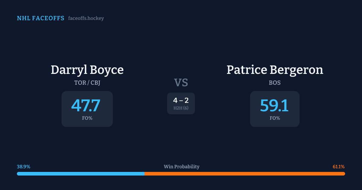 Darryl Boyce vs Patrice Bergeron — Faceoff Head-to-Head