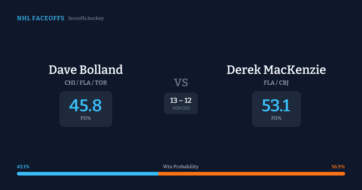 Dave Bolland vs Derek MacKenzie — Faceoff Head-to-Head