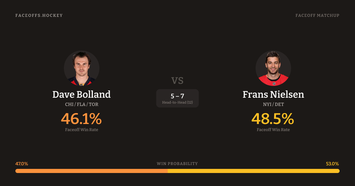 Dave Bolland vs Frans Nielsen — Faceoff Head-to-Head