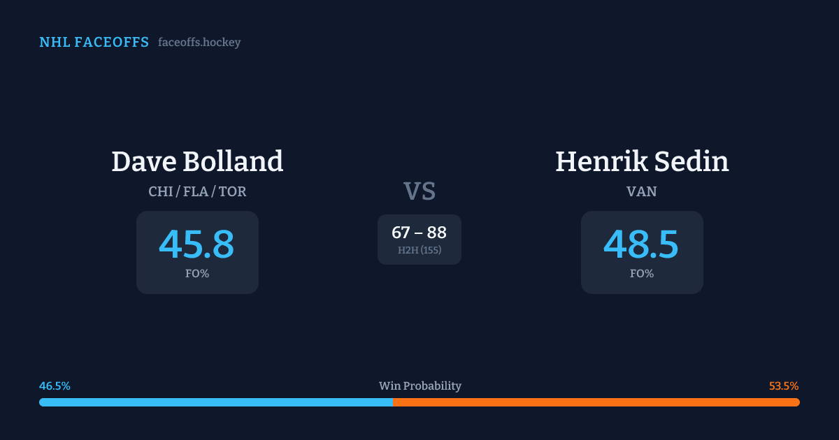 Dave Bolland vs Henrik Sedin — Faceoff Head-to-Head
