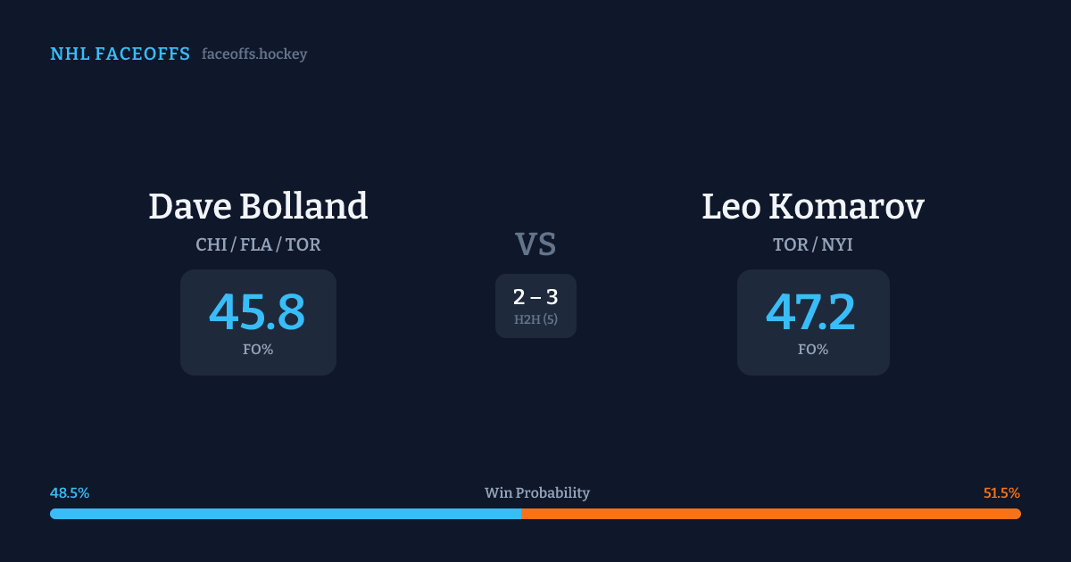 Dave Bolland vs Leo Komarov — Faceoff Head-to-Head