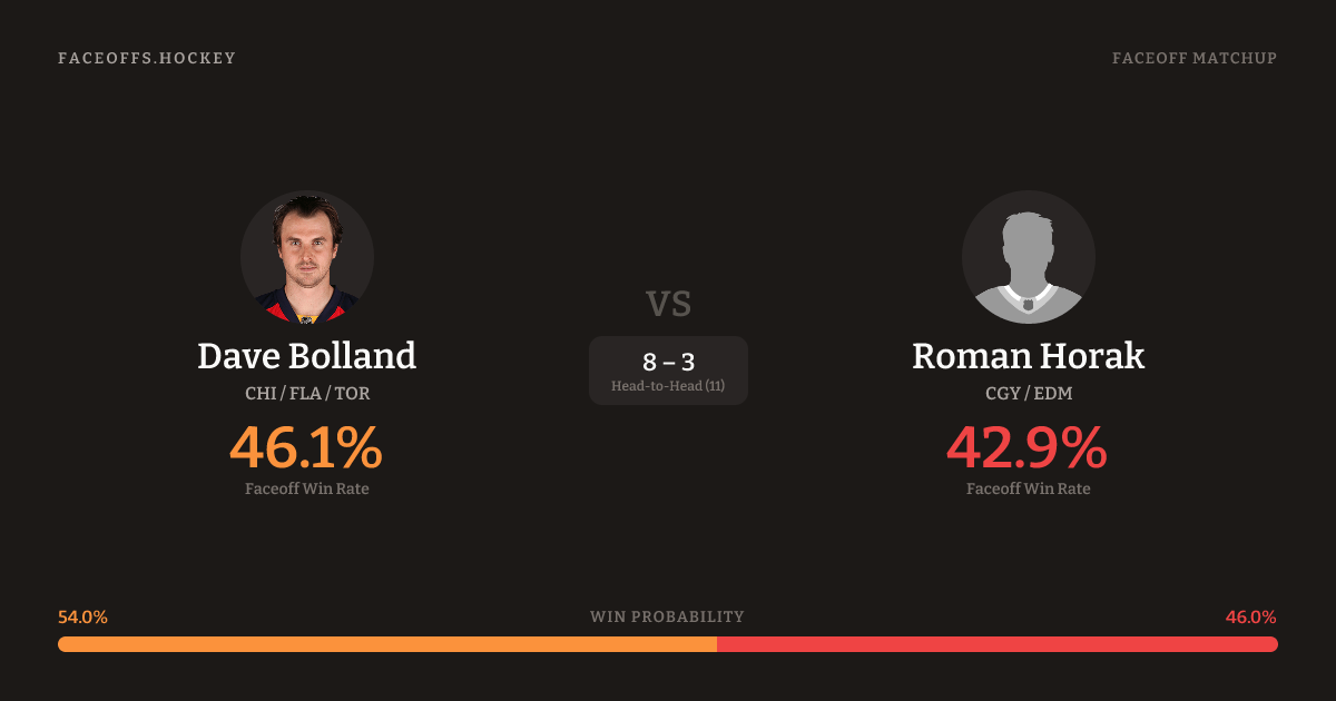 Dave Bolland vs Roman Horak — Faceoff Head-to-Head