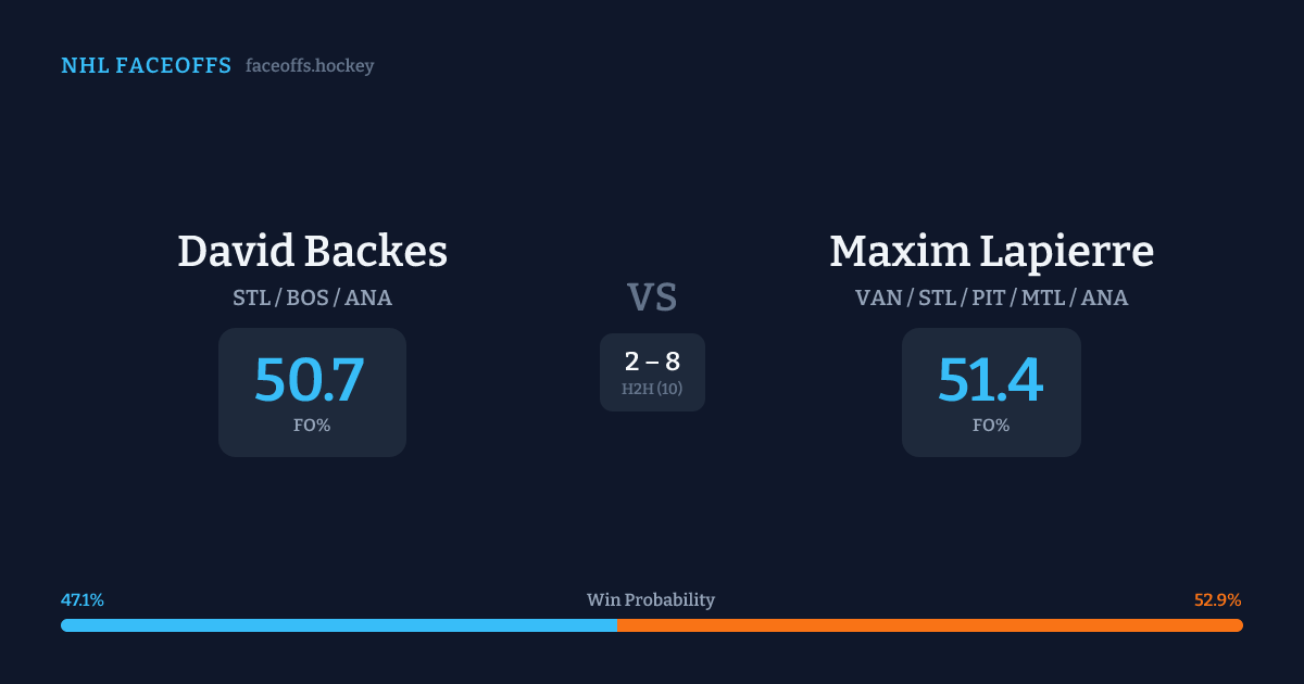 David Backes vs Maxim Lapierre — Faceoff Head-to-Head