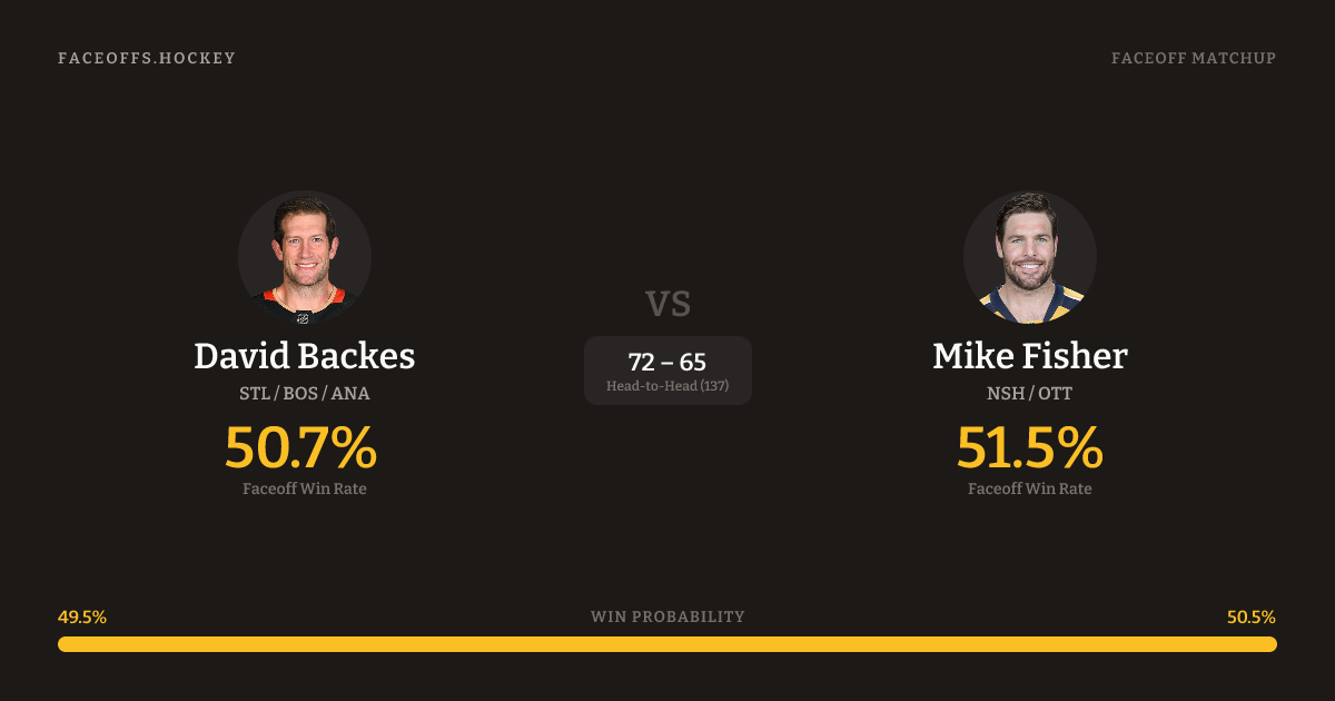David Backes vs Mike Fisher — Faceoff Head-to-Head