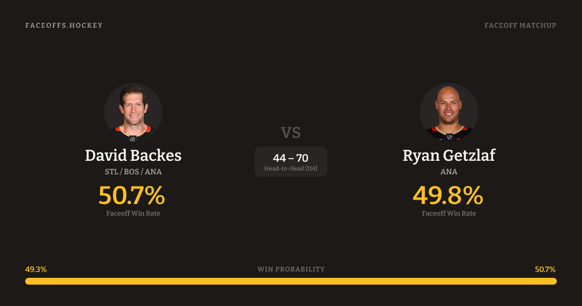 Backes 48.7% vs Getzlaf 47.4% (+1.4%)