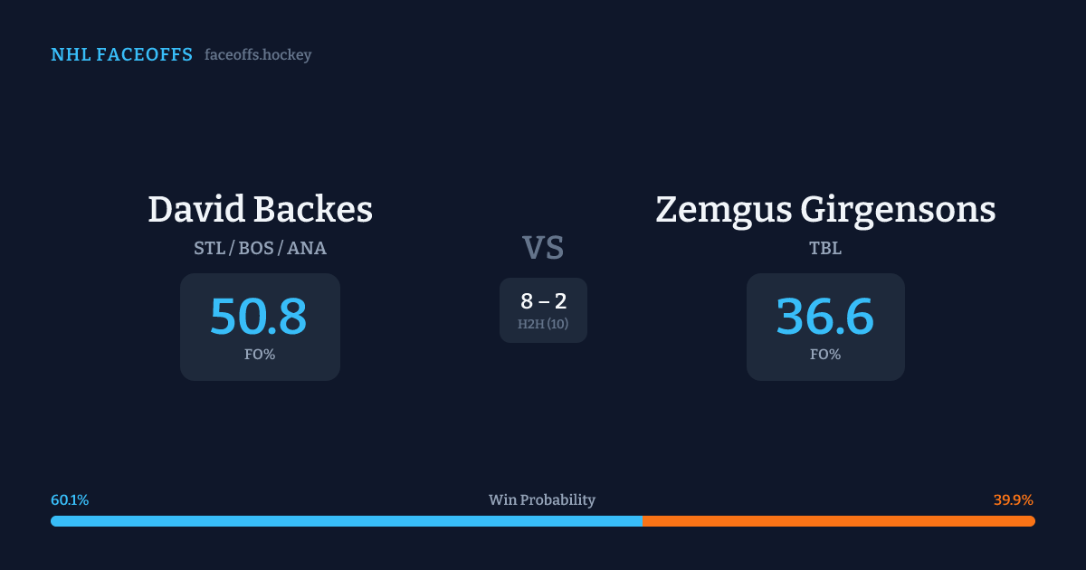 David Backes vs Zemgus Girgensons — Faceoff Head-to-Head