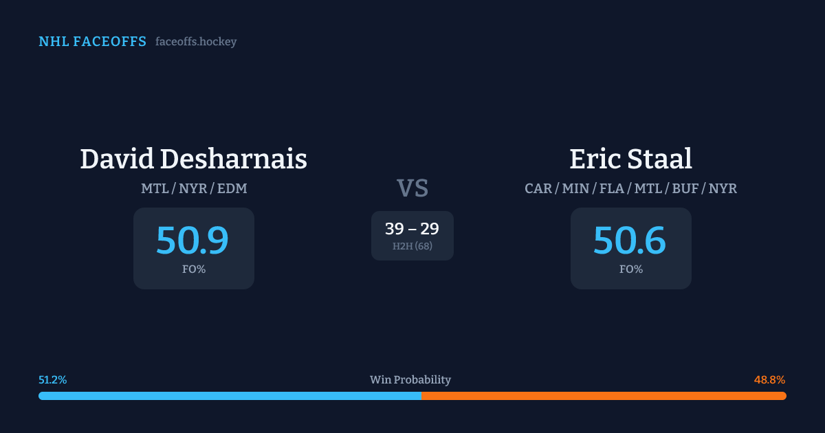 David Desharnais vs Eric Staal — Faceoff Head-to-Head