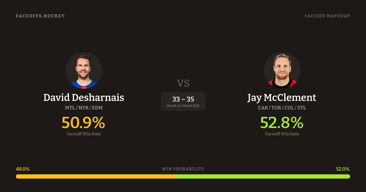 David Desharnais vs Jay McClement — Faceoff Head-to-Head