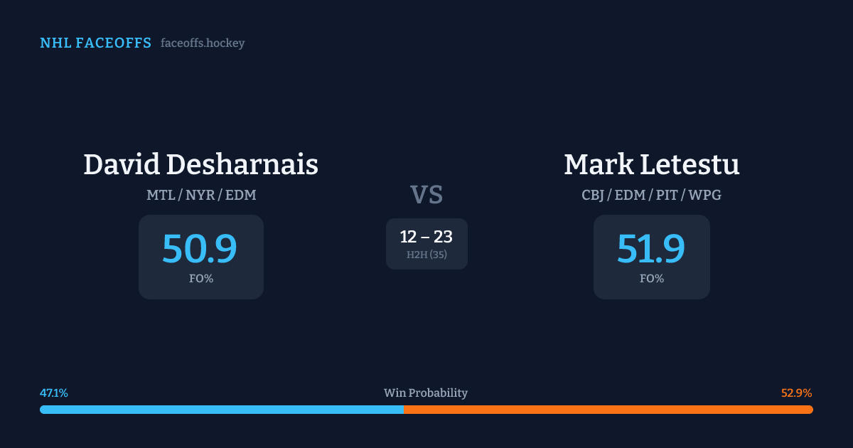 David Desharnais vs Mark Letestu — Faceoff Head-to-Head