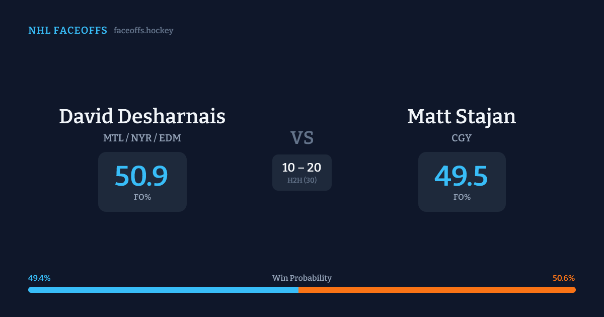 David Desharnais vs Matt Stajan — Faceoff Head-to-Head