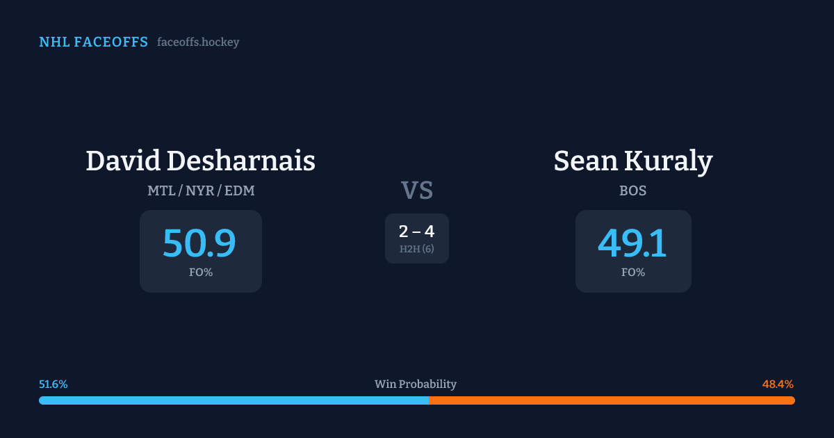 David Desharnais vs Sean Kuraly — Faceoff Head-to-Head
