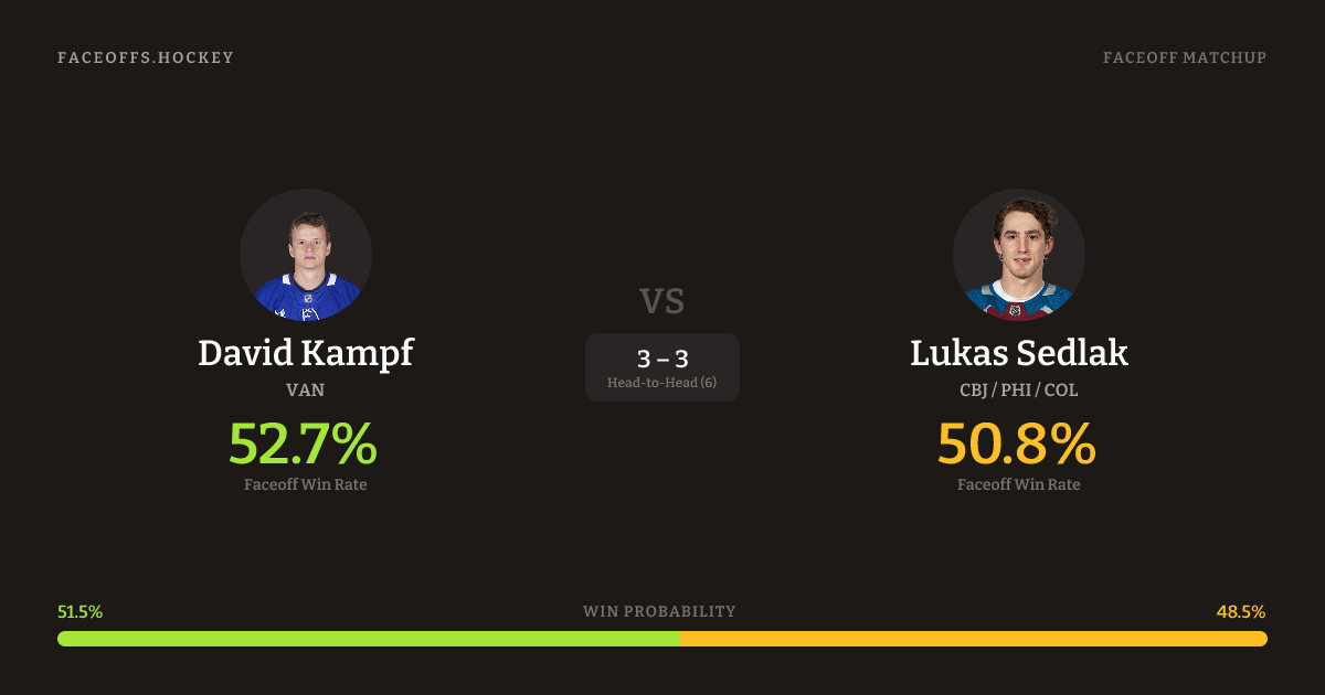 David Kampf vs Lukas Sedlak — Faceoff Head-to-Head