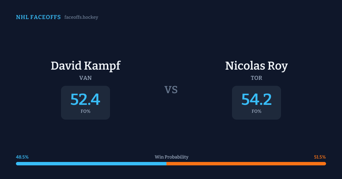 David Kampf holds a +3.0% FO% edge overall. Look for Kampf on neutral-zone draws (89% H2H, 9 meetings).