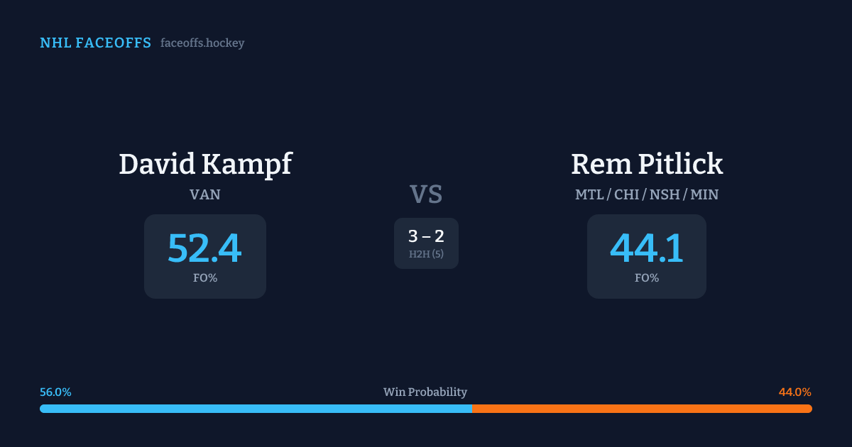 David Kampf vs Rem Pitlick — Faceoff Head-to-Head