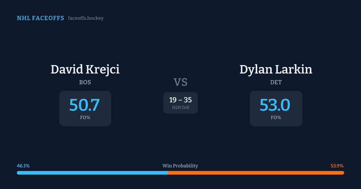 David Krejci vs Dylan Larkin — Faceoff Head-to-Head