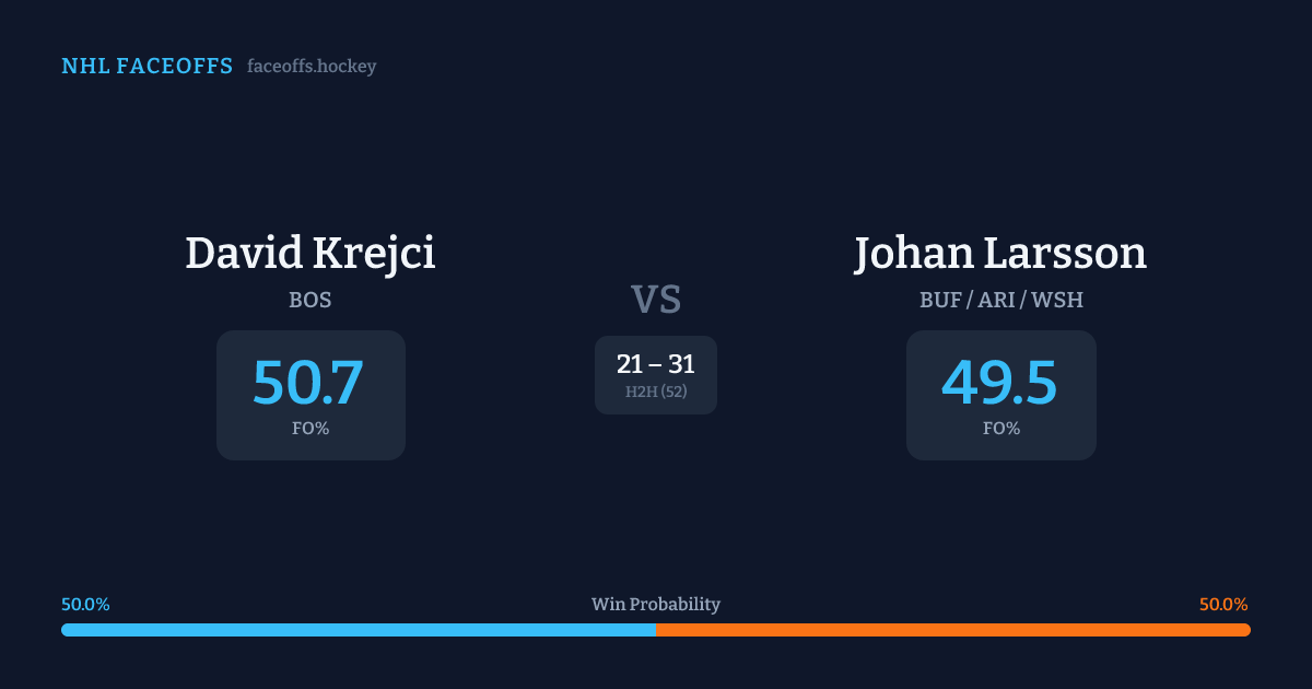 David Krejci vs Johan Larsson — Faceoff Head-to-Head