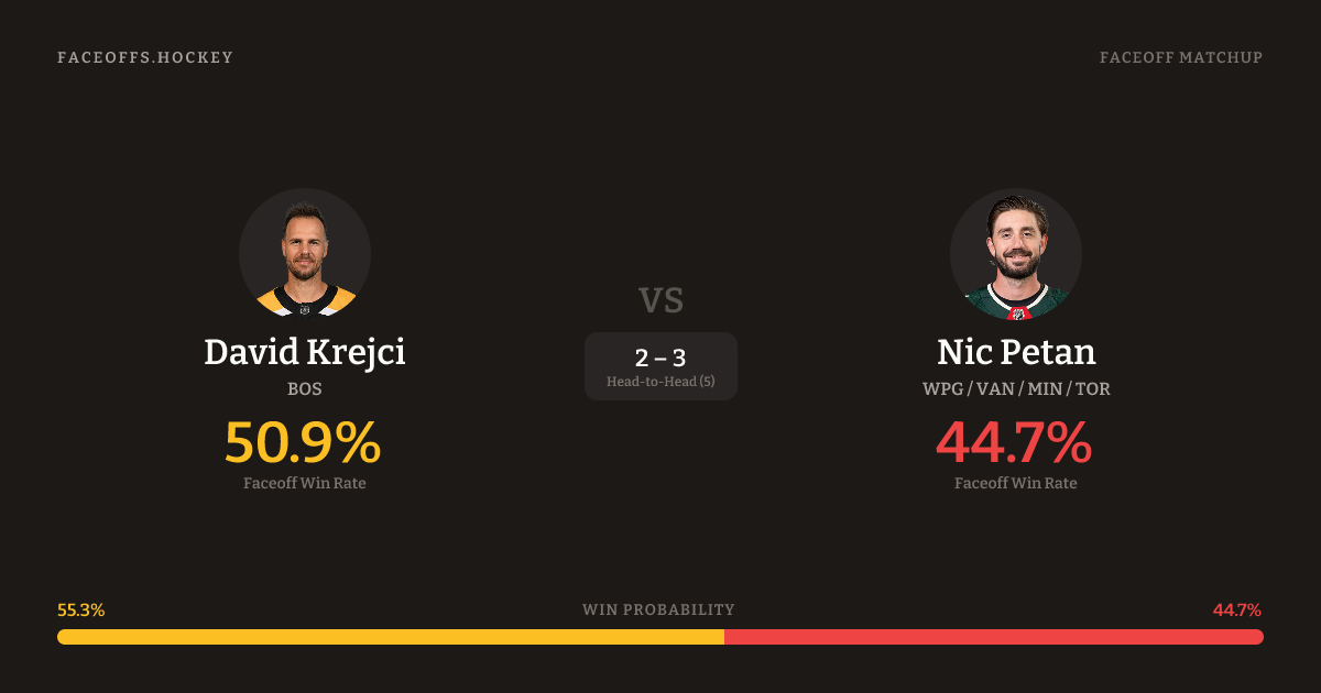 David Krejci vs Nic Petan — Faceoff Head-to-Head