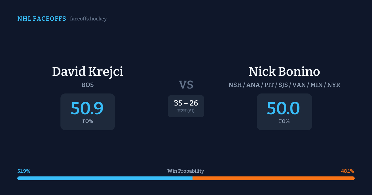 David Krejci vs Nick Bonino — Faceoff Head-to-Head