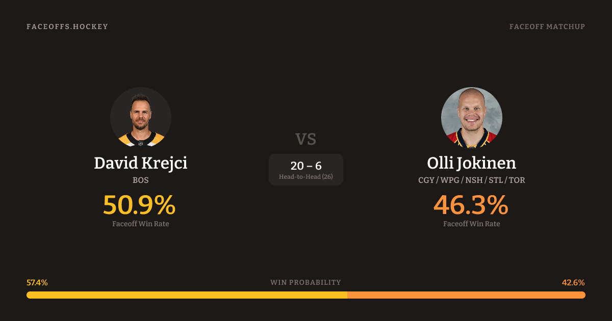 David Krejci vs Olli Jokinen — Faceoff Head-to-Head